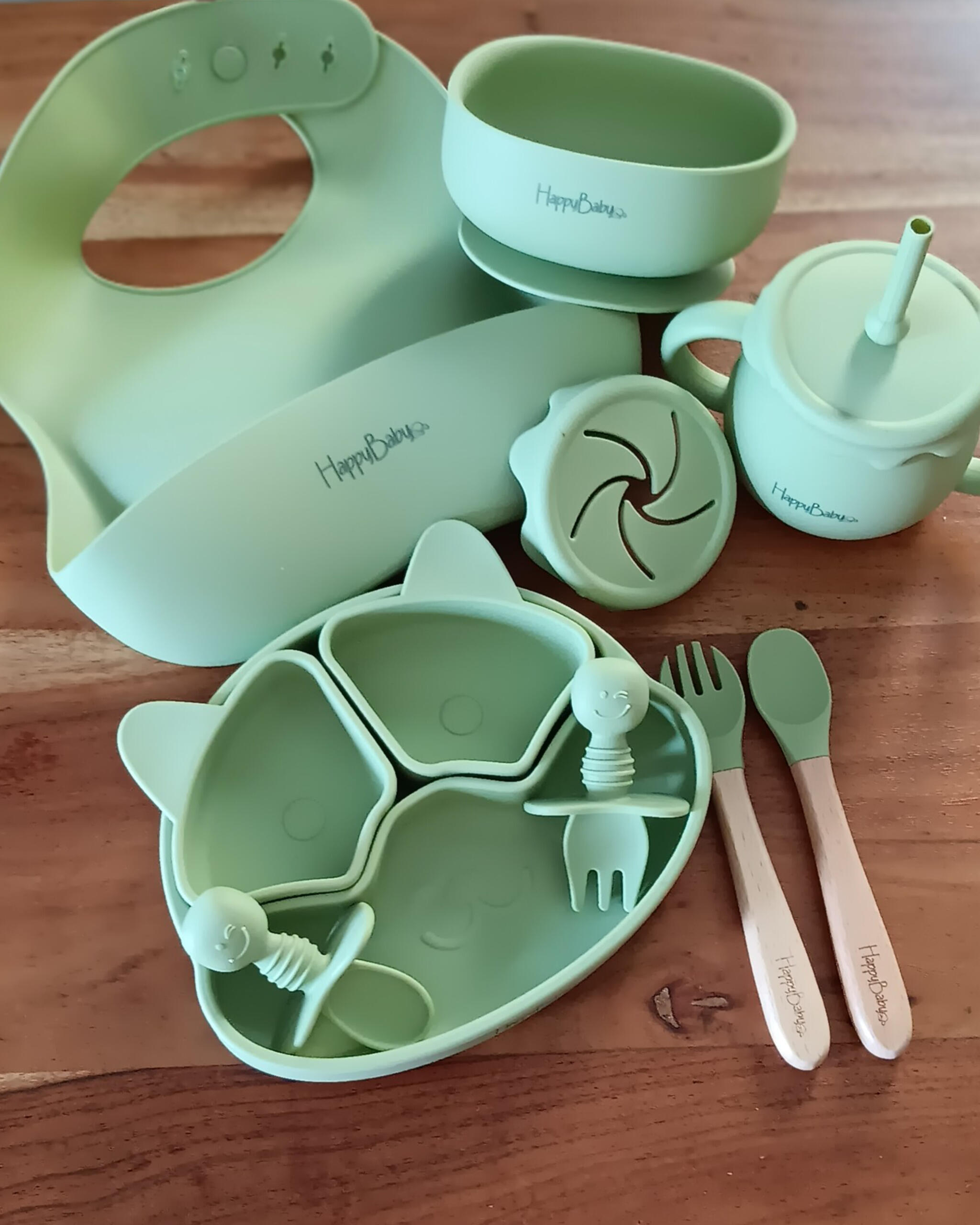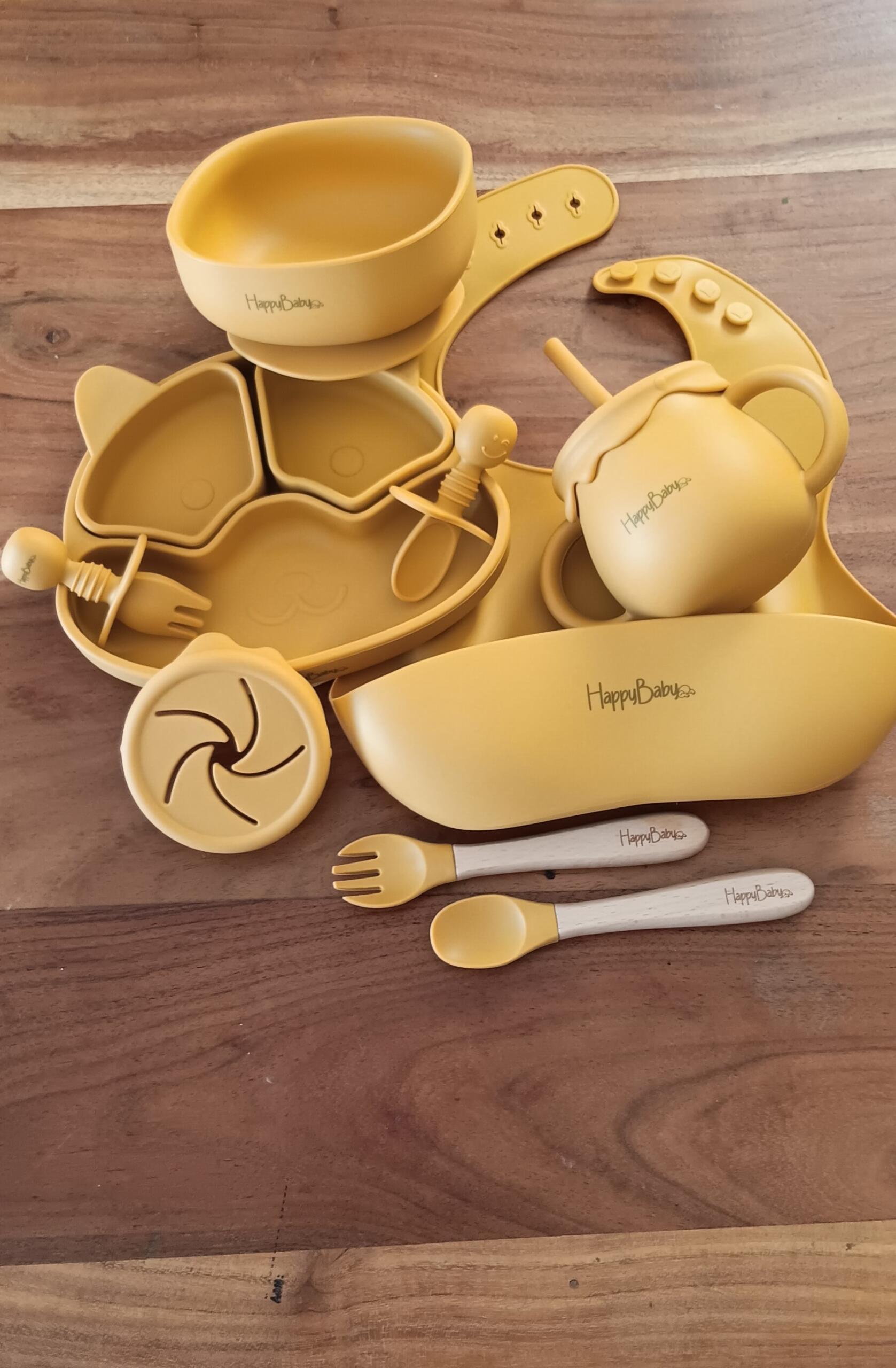 Κάνε το τάισμα πιο εύκολο, πιο οργανωμένο και πιο διασκεδαστικό με το ολοκληρωμένο Παιδικό Σετ φαγητού Σιλικόνης Happy Baby.