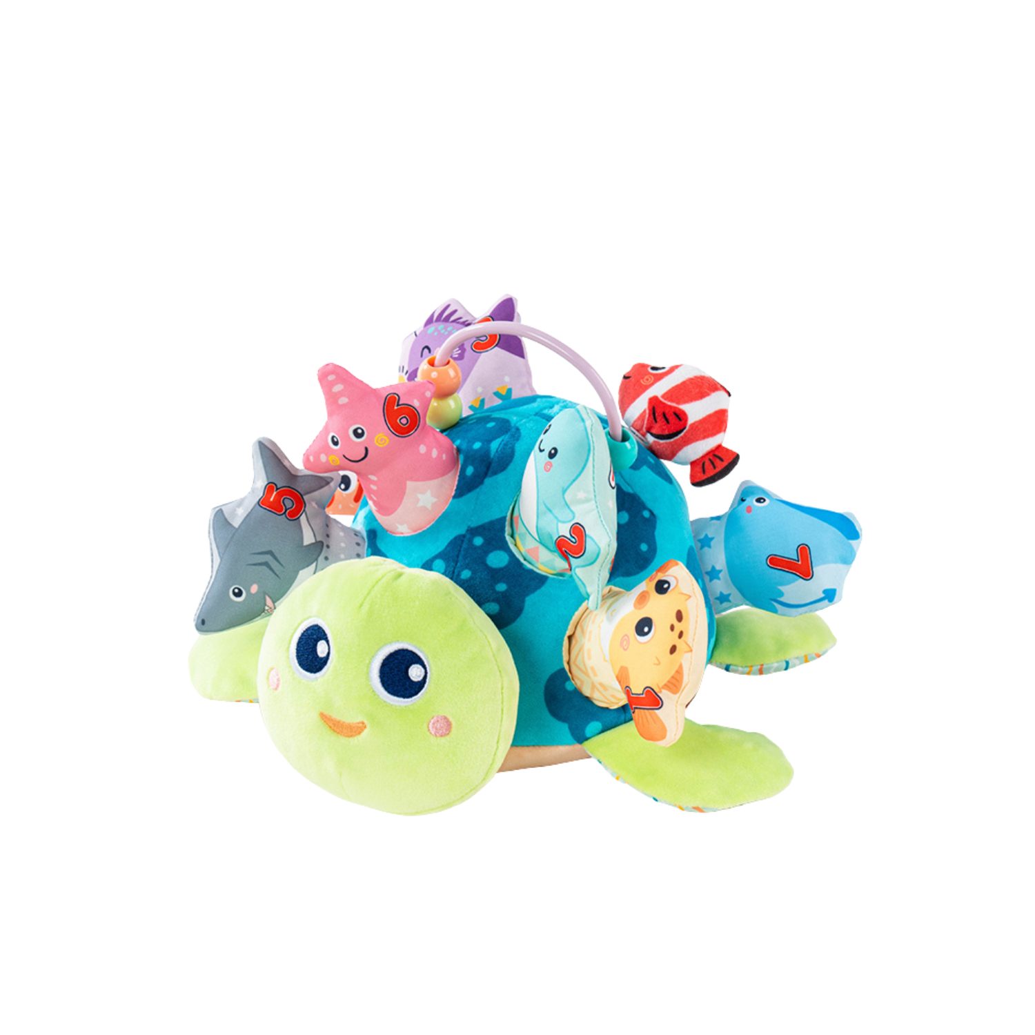 Το Διαδραστικό Παιχνίδι Δραστηριοτήτων Χελωνάκι διαθέτει επτά αποσπώμενα μαλακά ζωάκια με αριθμούς, με αποτέλεσμα να βοηθούν το παιδί να γνωρίσει τους πρώτους αριθμούς μέσα από το παιχνίδι. Το μωρό πιάνει, τραβά και εξερευνά κάθε στοιχείο, ενώ παράλληλα εξασκεί τη λεπτή κινητικότητα και τον συντονισμό χεριού-ματιού. Επιπρόσθετα οι διαφορετικές υφές και τα έντονα χρώματα ενισχύουν την οπτική αντίληψη και διεγείρουν τις αισθήσεις.